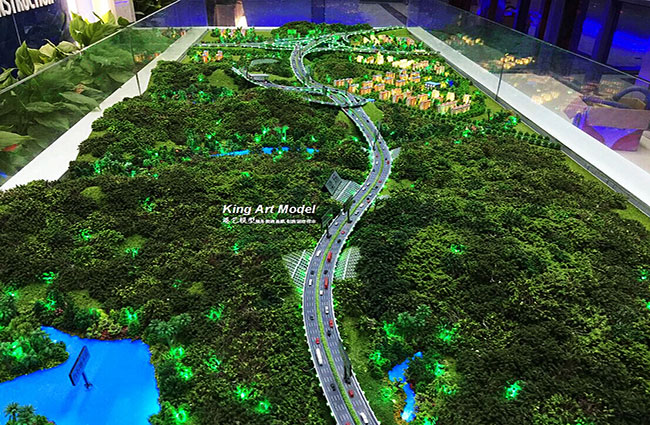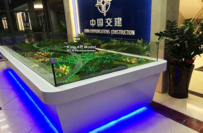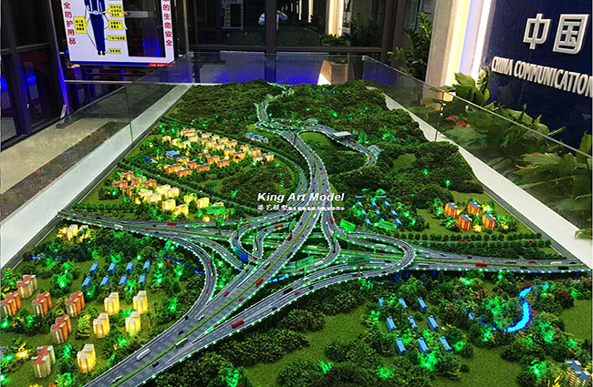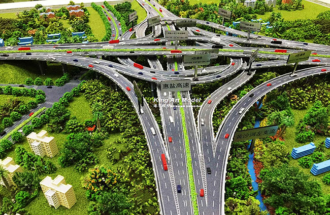 此次中交三航承接了深圳外環高速公路坪地九標段項目工程施工,項目計劃三年打造完成驗收正式交付使用。為了更好的引導工程施工進度及難度,中交三航委托深圳市港藝模型藝術設計有限公司打造坪地九標段沙盤模型,根據提供的圖紙,沙盤模型精細的體現了:立交互通的每一個細節,行車線、路面、路肩、防撞護欄、橋墩、涵洞、互通國道及市政道路的連接、收費站等高速配套。
